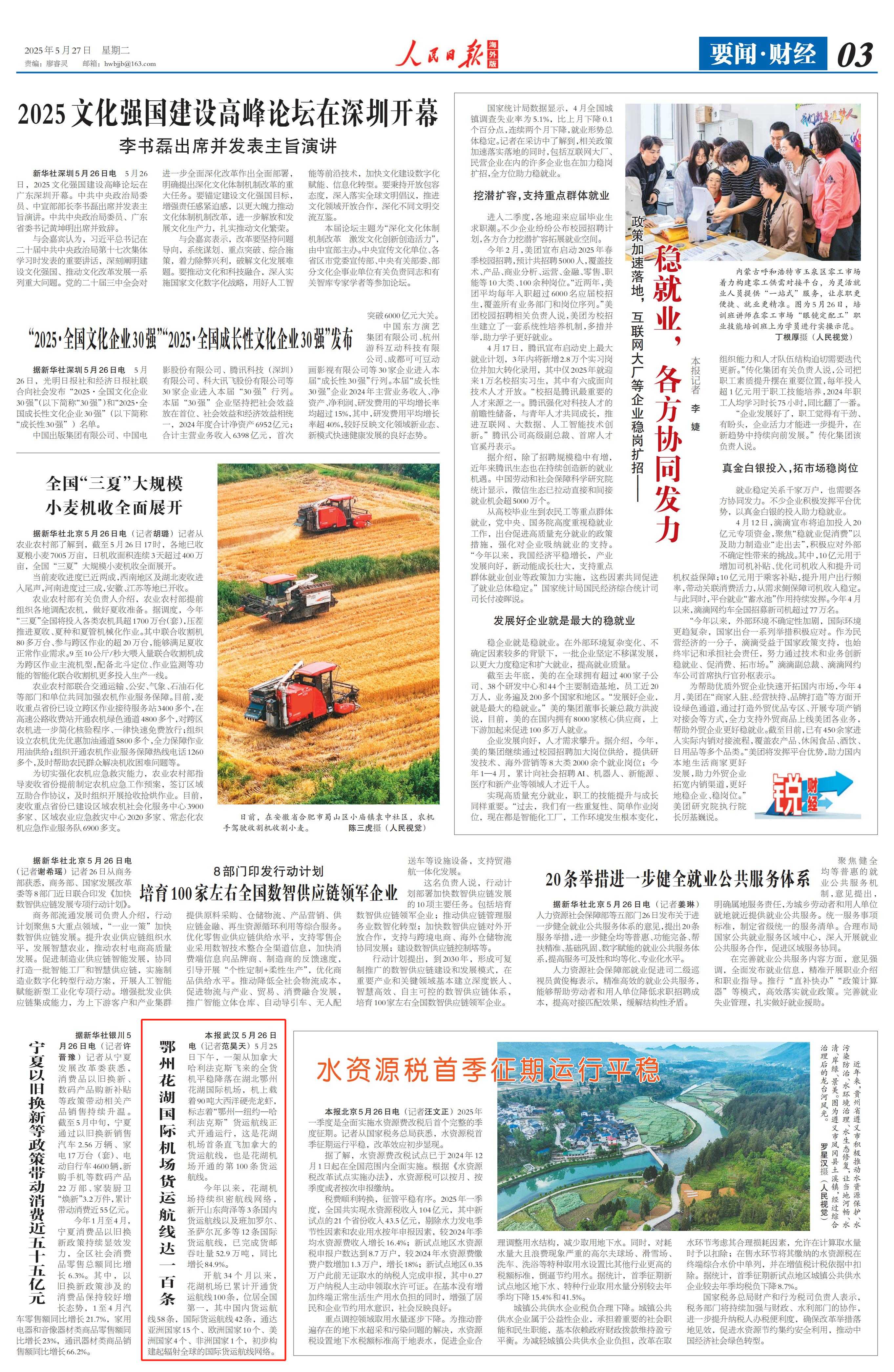 鄂州花湖国际机场货运航线达一百条